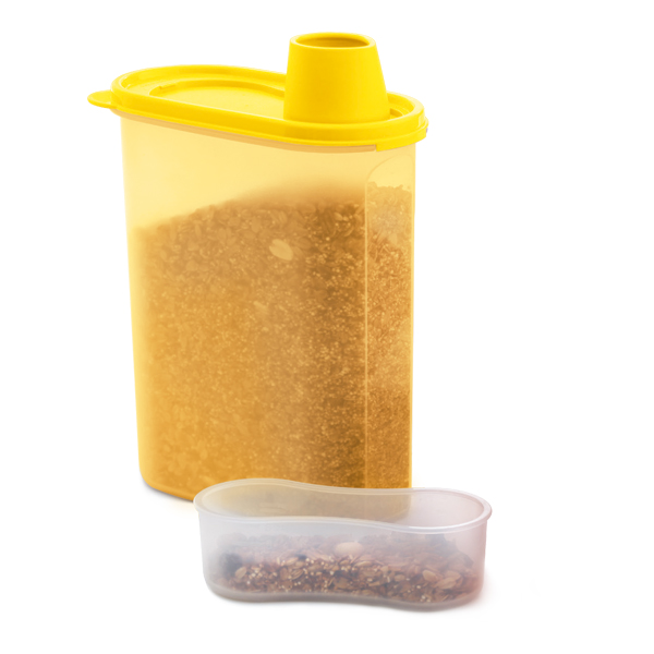 Su diseño ovalado permite retirar y colocar fácilmente el recipiente en la alacena.
